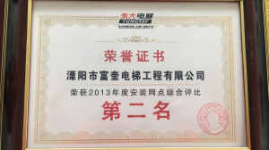 溧陽市富奎電梯工程有限公司 溧陽市富奎電梯工程有限公司是于二OO八年一月九日在原前身溧陽市電梯工程公司基礎上成立的,是專業從事電梯銷售安裝維修、保養的企業。是國家質監總局頒發的特種設備安裝、改造、維修A級安裝許可證單位。公司組織機構實行總經理負責制,公司下設管理部、銷售部、安裝維修部、質安部、財務部,公司另外設十二個分公司:四川分公司、江蘇分公司、上海分公司、浙江分公司、湖南分公司、遼寧分公司、山東分...